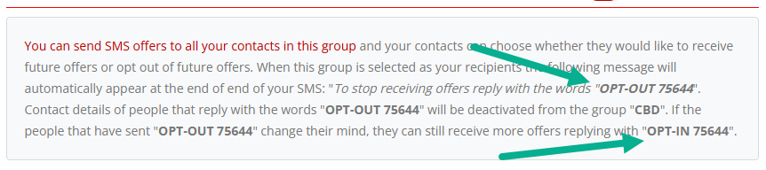 Step 3: Click the “Opt-out link” button and select “Whole Contact Book”. If you only want to have a person unsubscribed from a specific contact group, then you can select the, in this example: “Group “CBD”. This means that if a contact is subscribed to multiple groups, they will still receive SMS promotions when you send out texts from the other groups that they are a part of.