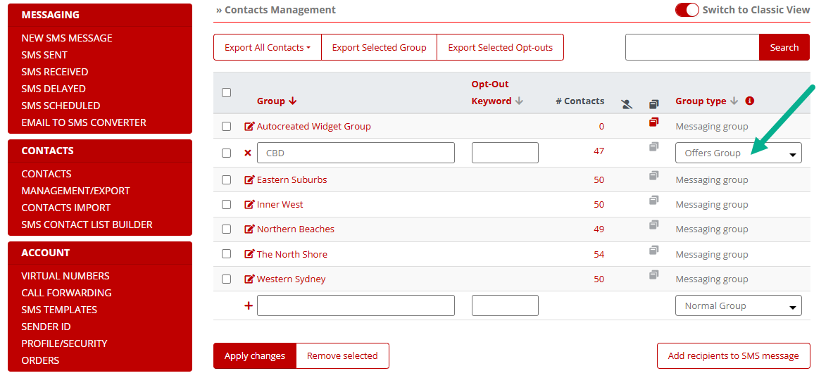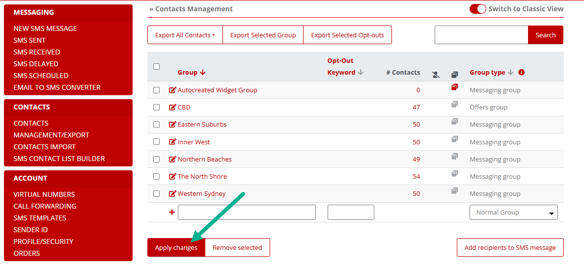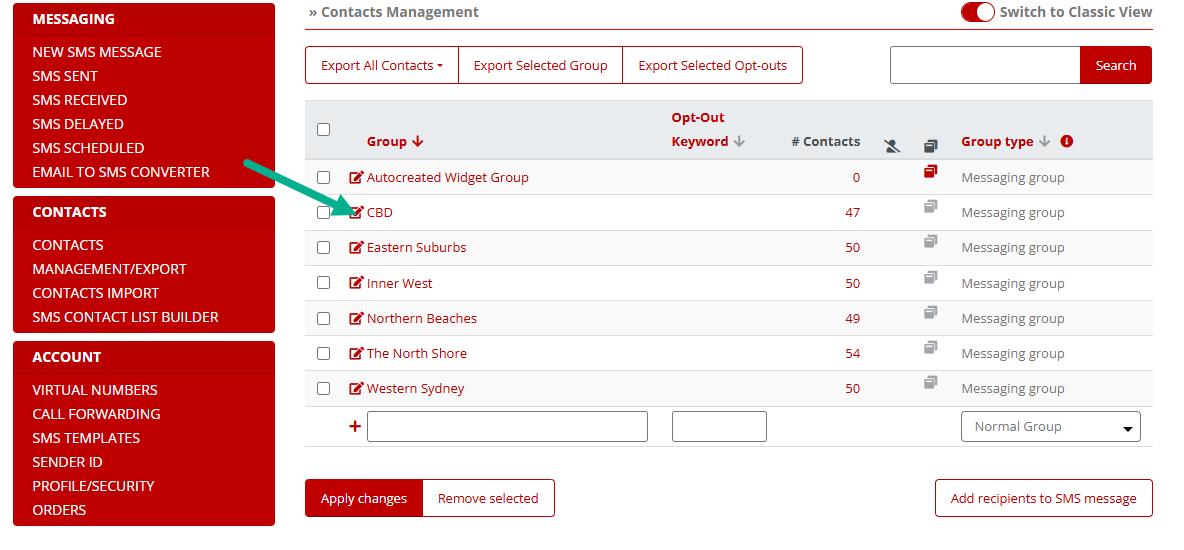 If you have not set up your contacts, please see our guide on how to do this: Importing Contact Groups (Spreadsheet Upload)
